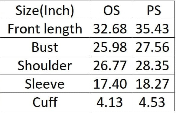 Sizing: