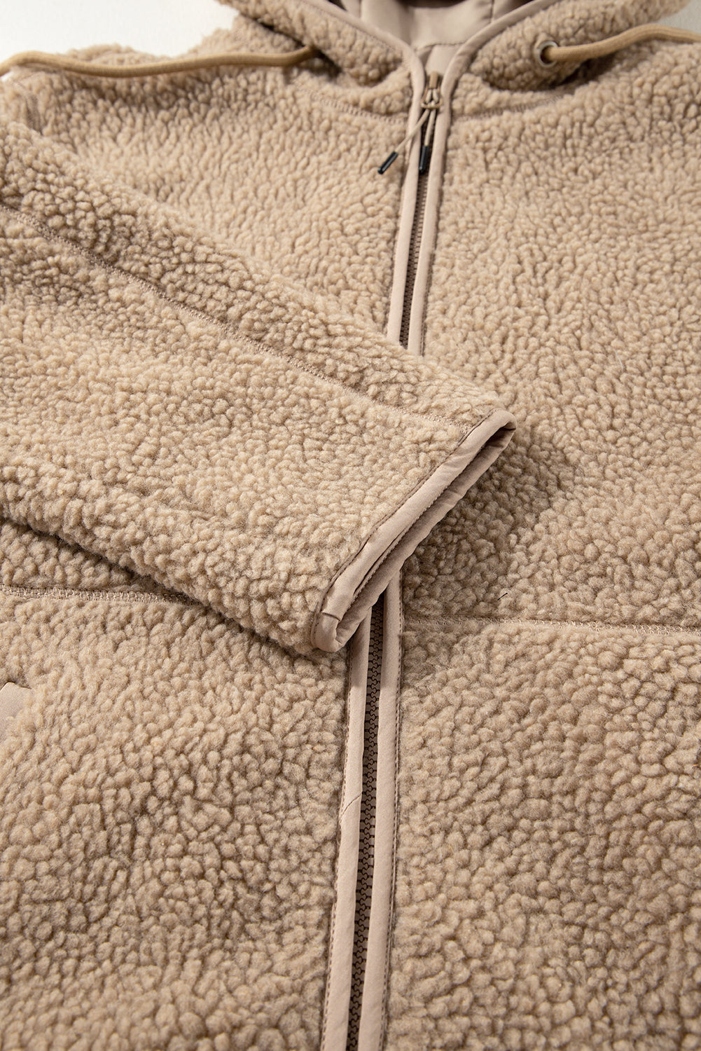 PREORDER: Pale Khaki Fleece Zip Up Drawstring Hooded Pocketed Jacket (Ships 3-4 Weeks)