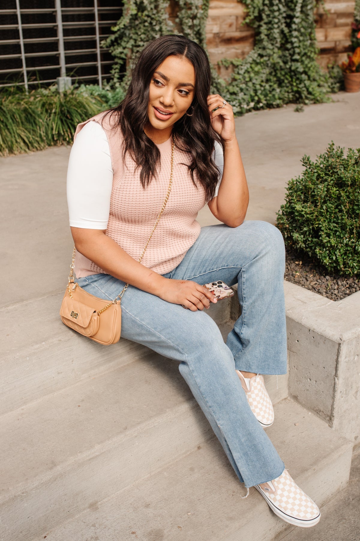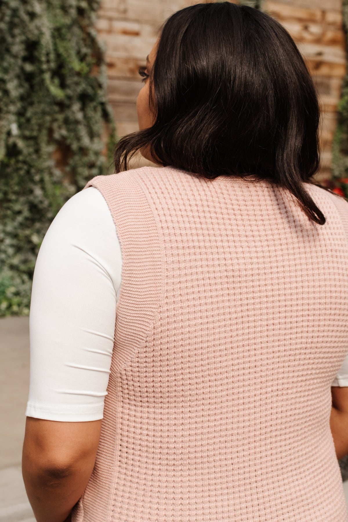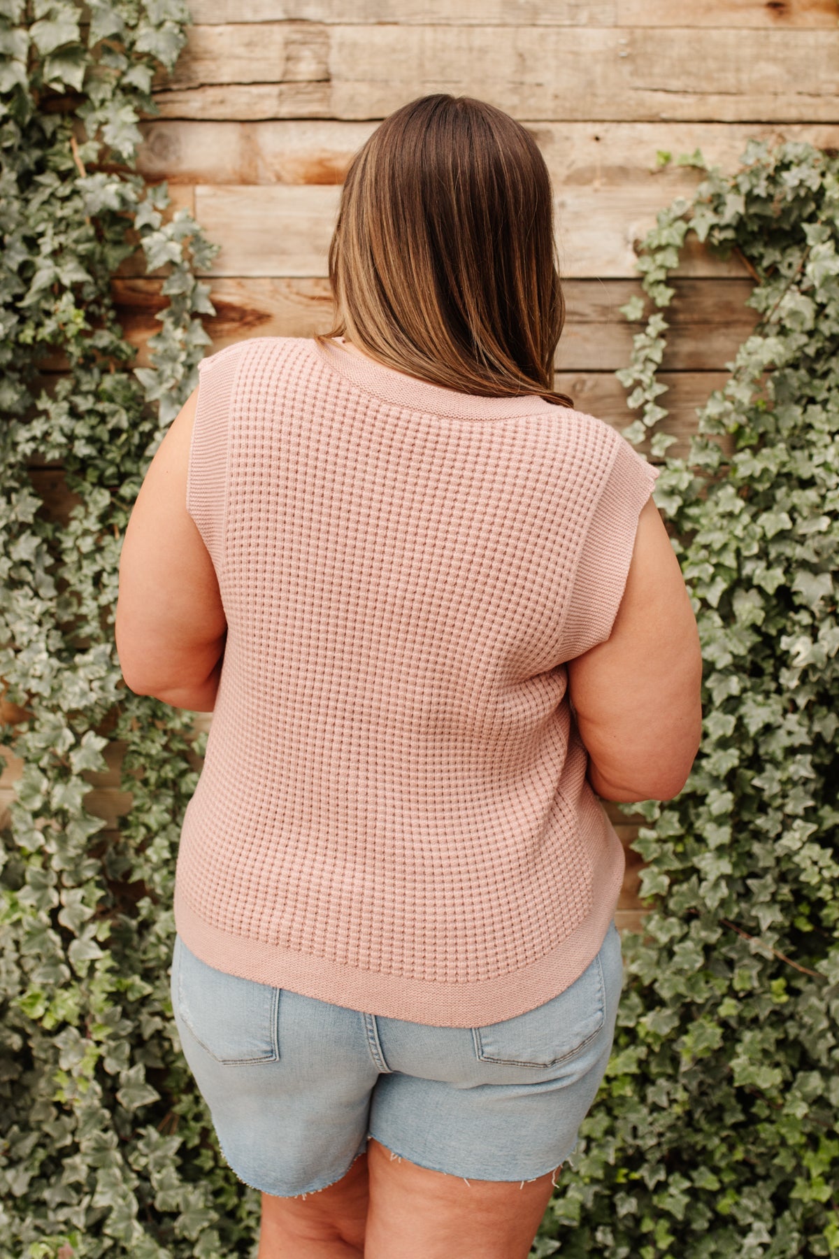 Feeling preppy in the Take A Stand Top! A pink waffle knit shapes a round neckline, and sleeveless cut, with ribbed detailing around hem and sleeves. Layer a white button up underneath, with your fav skinnies, and nude sandals, with dainty gold jewelry for a chic and preppy look!